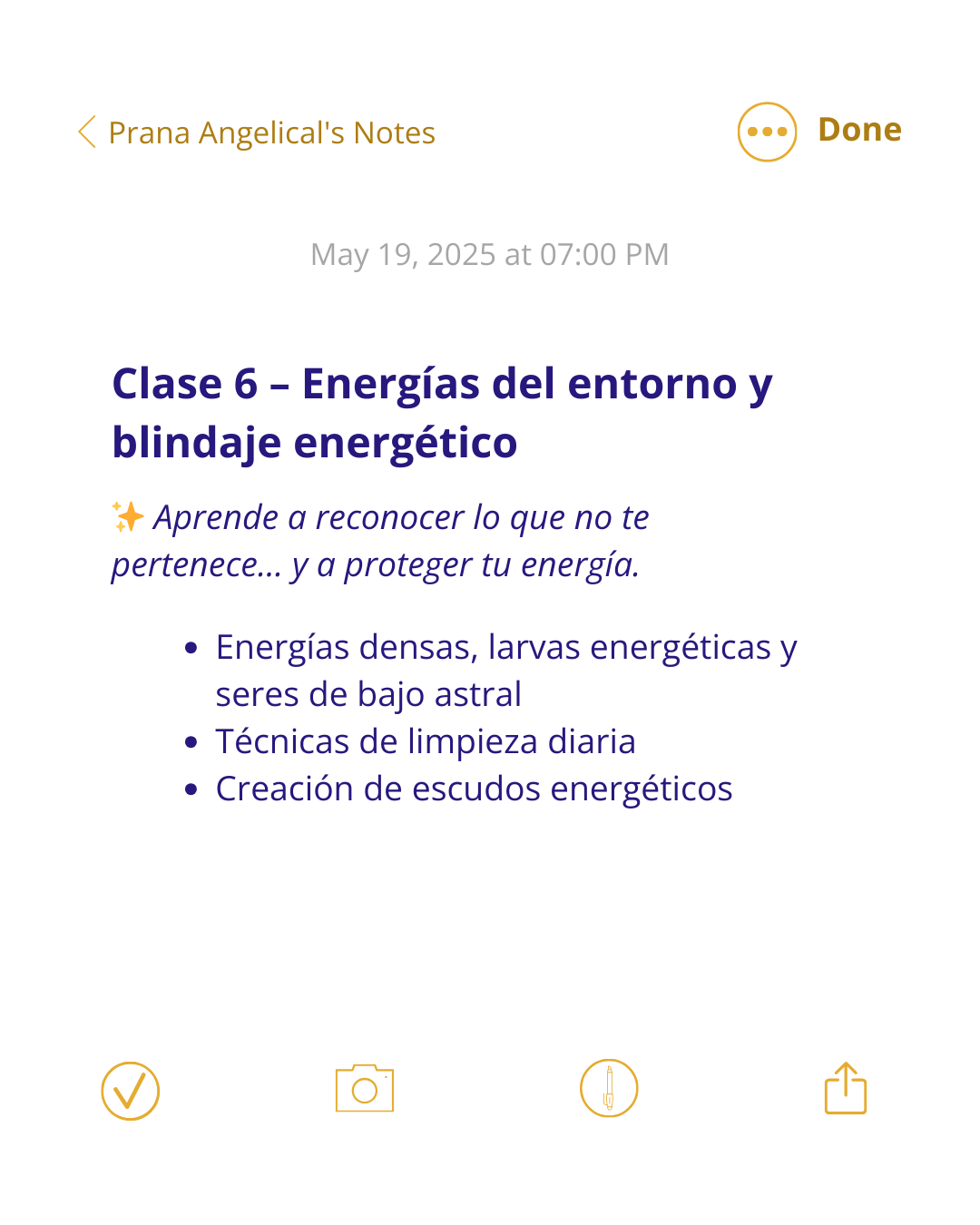 Un espacio seguro donde aprenderás a leer tu energía, limpiarla, protegerla y expandirla…