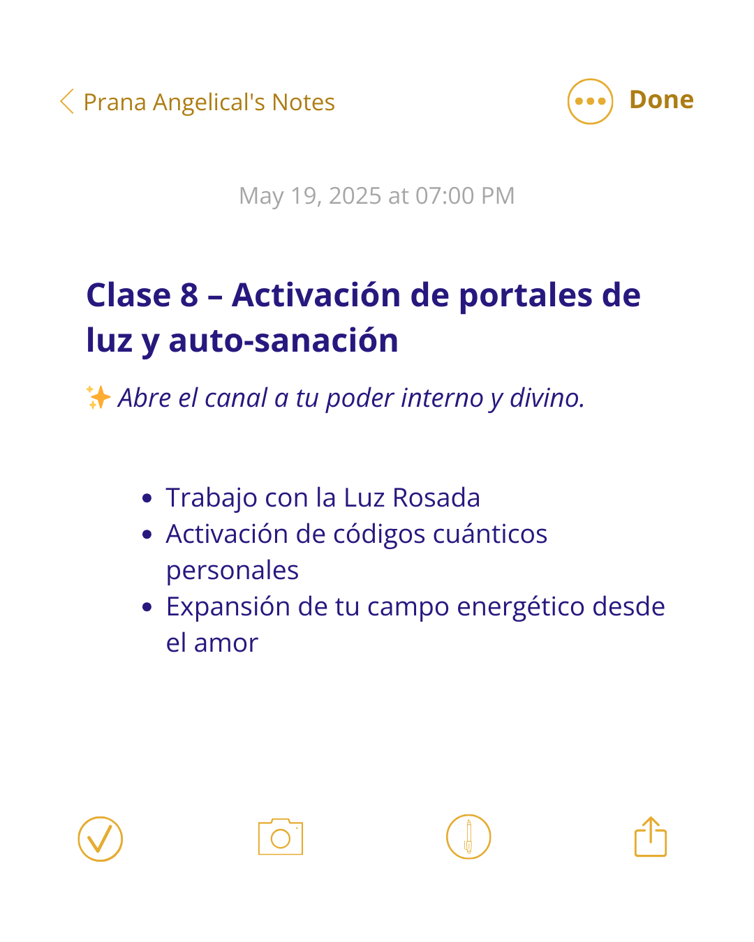 Clases diarias donde recibirás enseñanzas cuánticas canalizadas, prácticas de sanación energética y herramientas para tu vida real.